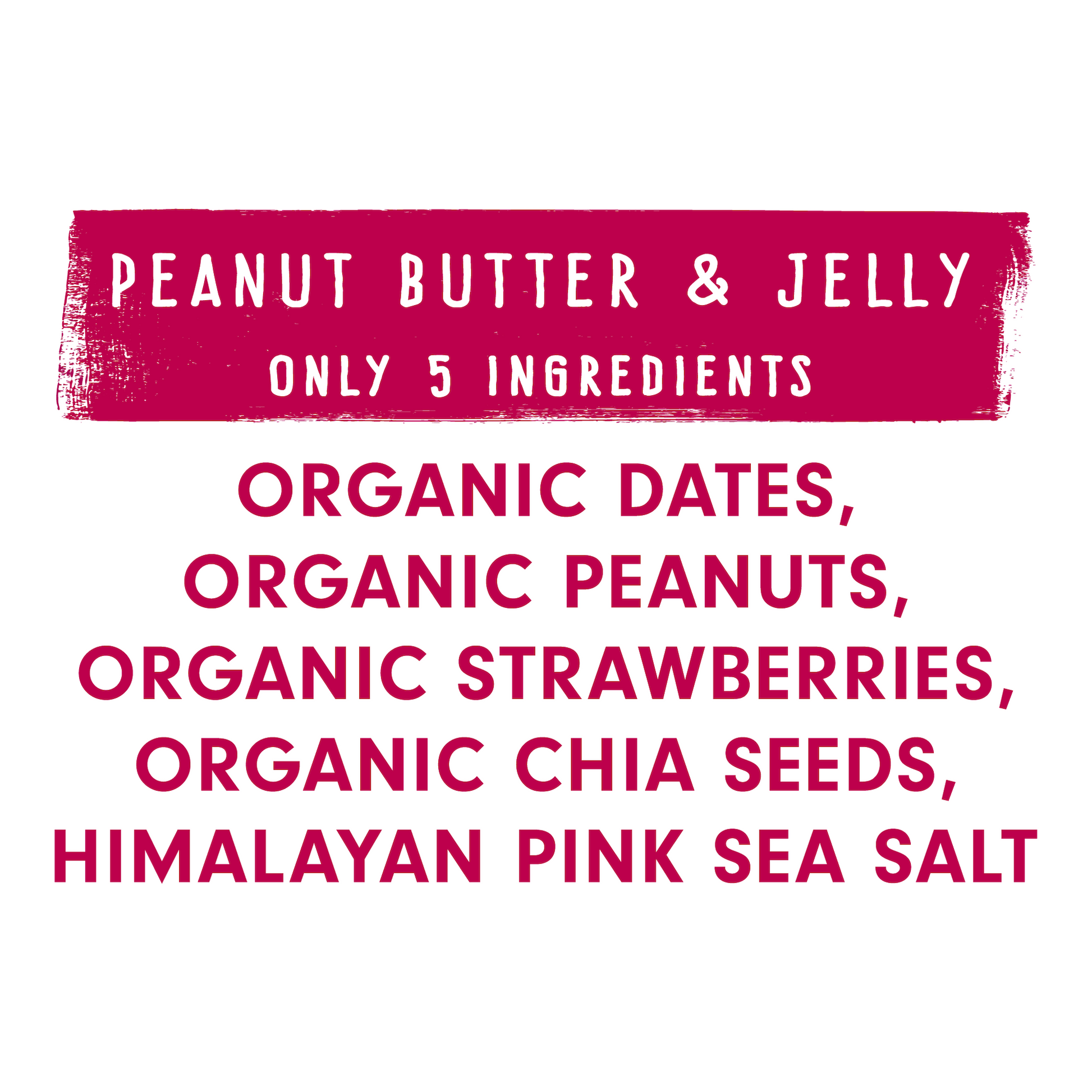 Only 5 Ingredients: Organic Dates, Organic Peanuts, Organic Strawberries, Organic Chia Seeds, Himalayan Pink Sea Salt